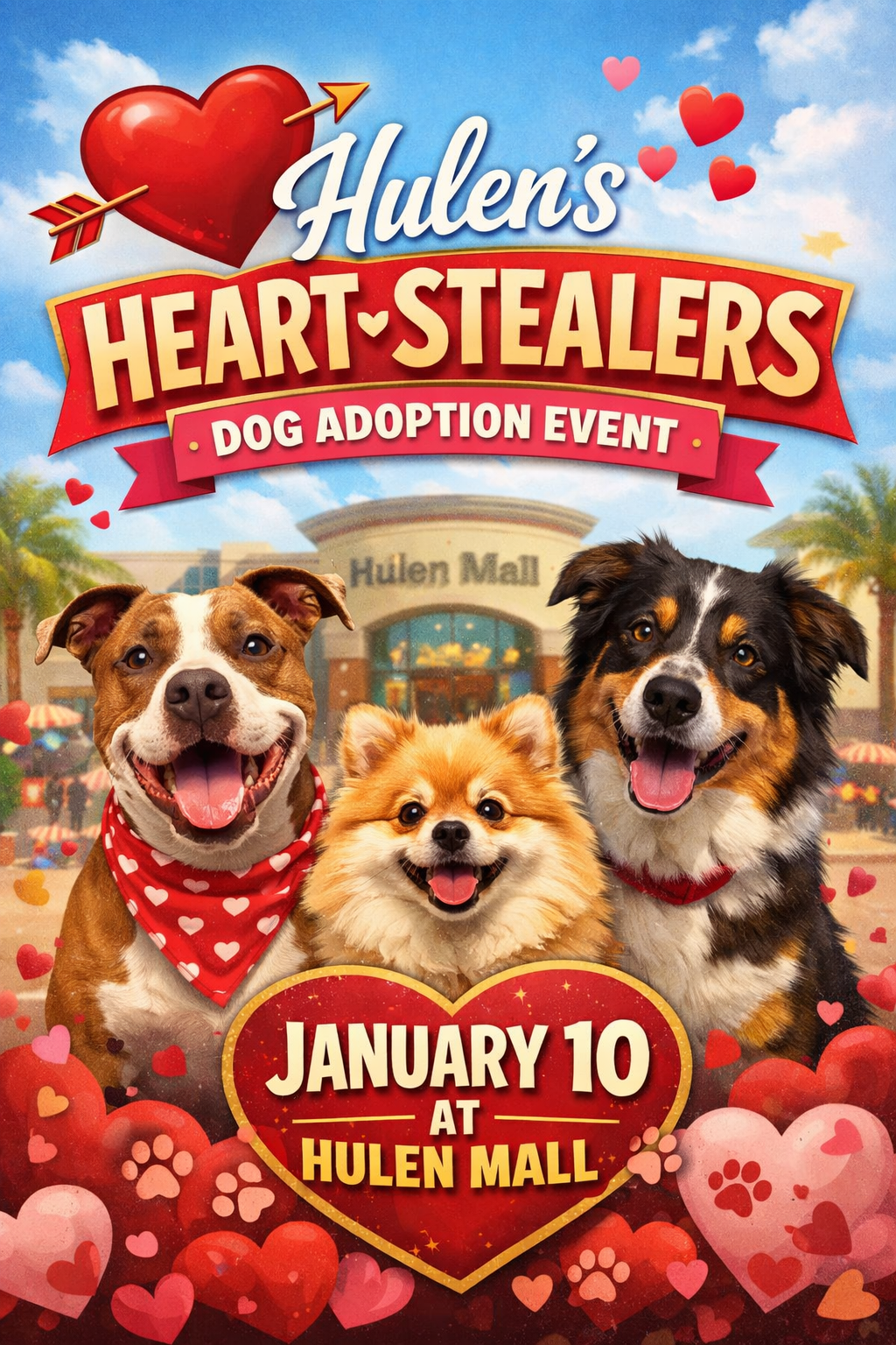 We are looking for volunteers to take shelter dogs to our Hulen’s Heart-Stealers Adoption Event to help them meet potential adopters and find loving homes.